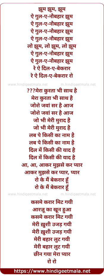 Lyrics of Aye Gule -Naubahar Jhum - झूम झूम, झूम
