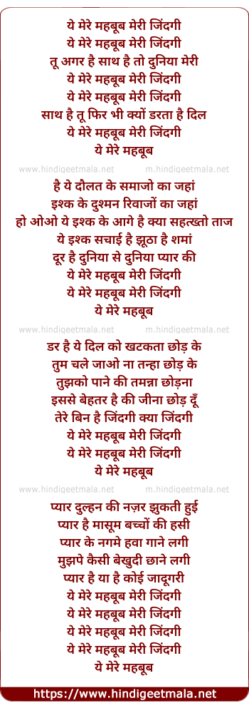 Poetic Translation - Lyrics of Aye Mere Mehboob (Sad)