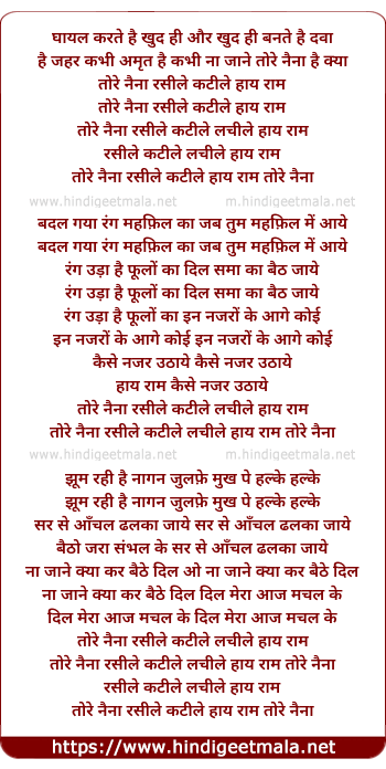 Lyrics of Aye Nain Qatile Hoth Rangile - ऐ नैन कटीले हॉट रँगीले