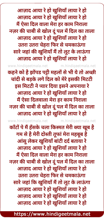 Lyrics of Azaad Aaya Re - आज़ाद आया रे