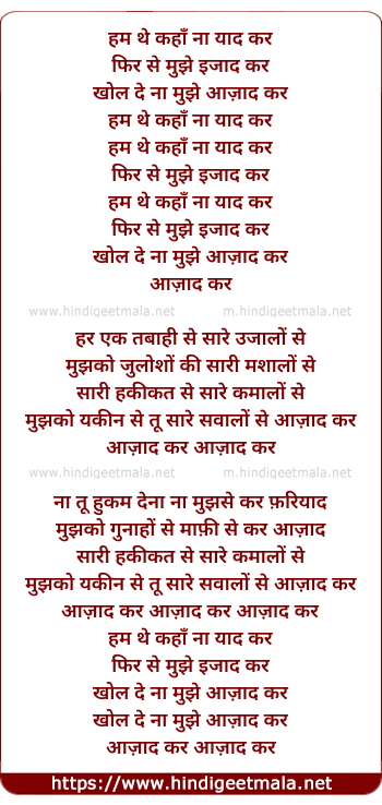 Poetic Translation - Lyrics of Azaad Kar - आज़ाद कर
