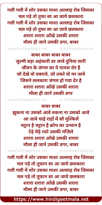 Lyrics of Baabarr - बाबर