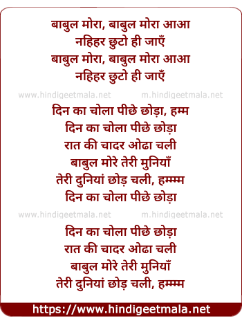 Lyrics of Baabul Mora (Poorna-2017) - बाबुल मोरा( पूर्णा-2017)