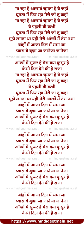 Lyrics of Baaho Me Tu Aaja - Hip Hop Mix - गा रहा है आसमां चूमता है ये जहाँ