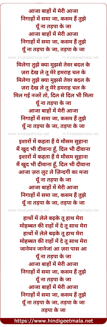 Lyrics of Baahon Me Meri Aaja - आजा बाहों में मेरी आजा