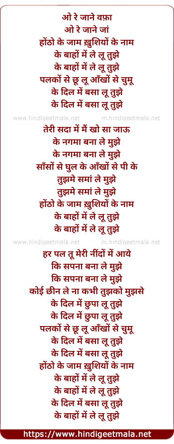 Lyrics of Baahon Mein Le Lu Tujhe - बाहों में ले लूँ तुझे