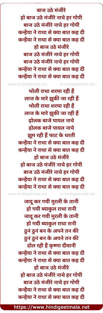 Lyrics of Baaj Uthe Manjire - बाज उठे मंजीरे