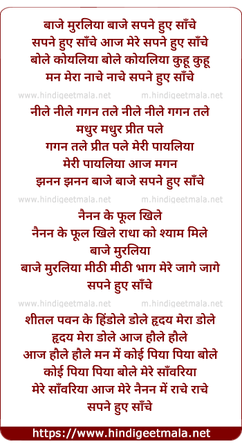 Lyrics of Baaje Muraliyaa Baaje, Sapane Hue Saanche - बाजे मुरलिया बाजे, सपने हुए साँचे