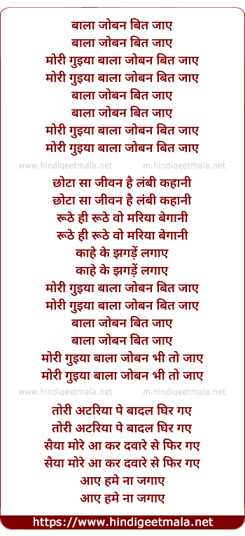 Lyrics of Baala Joban Beet Jaaye - बाला जोबन बित जाए