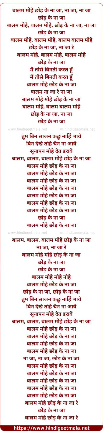 Lyrics of Baalam Mohe Chhod Ke Na Jaa - बालम मोहे छोड़ के ना जा, ना जा, ना जा
