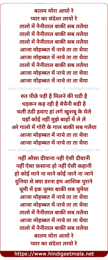 Lyrics of Baalam Moraa Aayo Re - बालम मोरा आयो रे