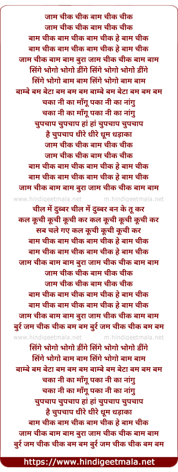 Lyrics of Baam Cheek Cheek - बाम चीक चीक