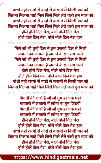 Lyrics of Bandhon Nahi Rasmoon Se - बांधों नहीं रसमों से