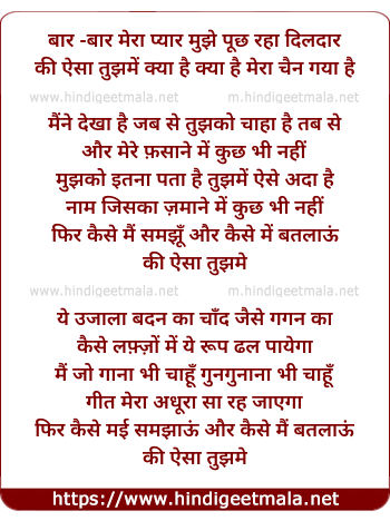 Lyrics of Bar Bar Mera Pyar Mujhe Puchh Raha Diladar - बार बार मेरा प्यार मुझे पूछ रहा दिलदार