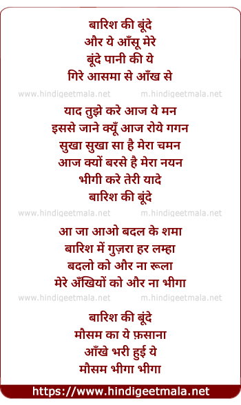 Lyrics of Baarish Ki Boonde - बारिश की बूंदे