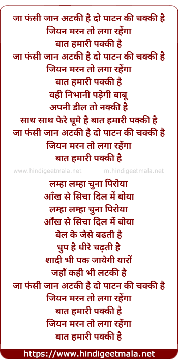 ja fansi sans atki hai do patan ki chakki hai