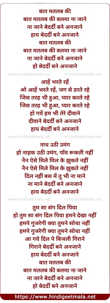 Poetic Translation - Lyrics of Baat Matlab Ki Balma Naa Mane - बात मतलब की बलमा ना माने