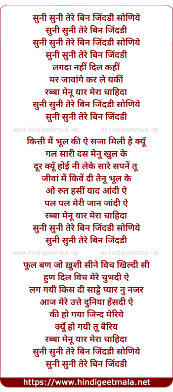 suni suni tere bin jindadi soniye
