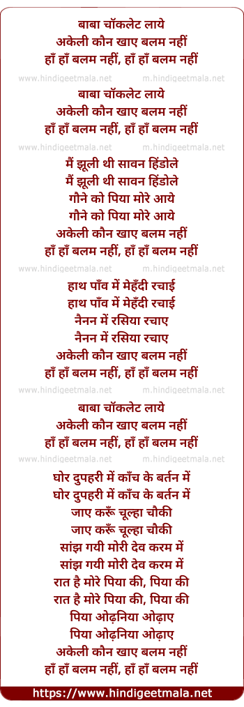 Lyrics of Baba Chocolate Laye - बाबा चॉकलेट लाये