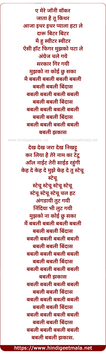 Lyrics of Babli Babli Bindash - बबली बबली बिंदाश
