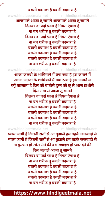 Poetic Translation - Lyrics of Babli Badmaash Hai (Remix) - बबली बदमाश है बबली बदमाश है