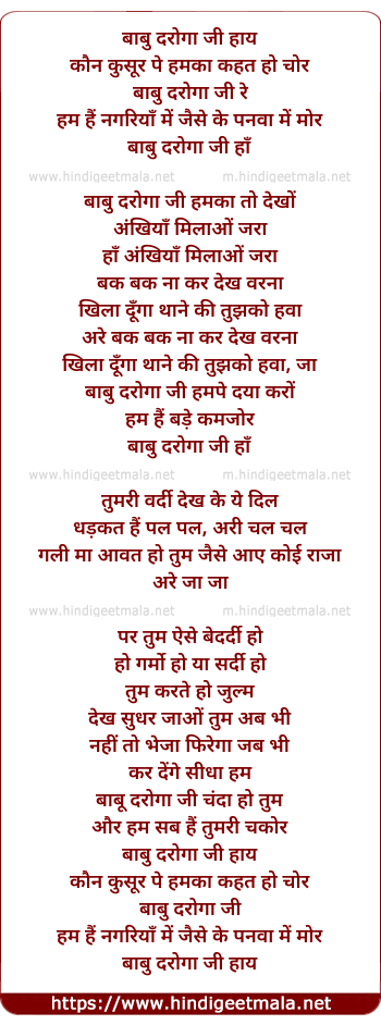 Lyrics of Babu Darogaji - बाबु दरोगा जी हाय