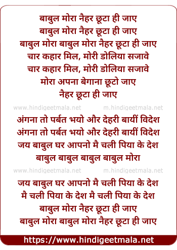 Lyrics of Babul Moraa - बाबुल मोरा