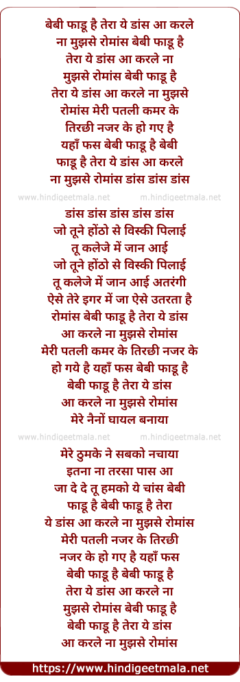 Lyrics of Baby Fadu Hai Tera Ye Dance - बेबी फाडू है तेरा ये डांस