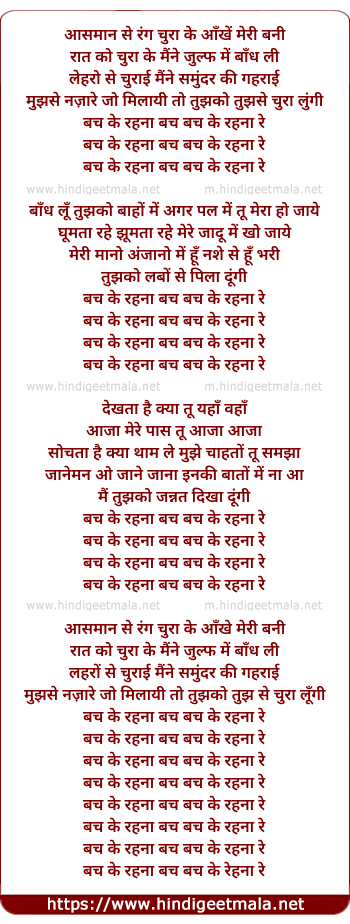 Lyrics of Bach Ke Rehna Bach Bach Ke Rehna Re - बच के रहना बच बच के रहना रे