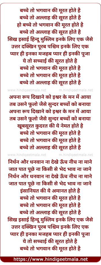 Lyrics of Bachche To Bhagwan Ki Murat Hote Hai - बच्चे तो भगवान की मूरत होते है