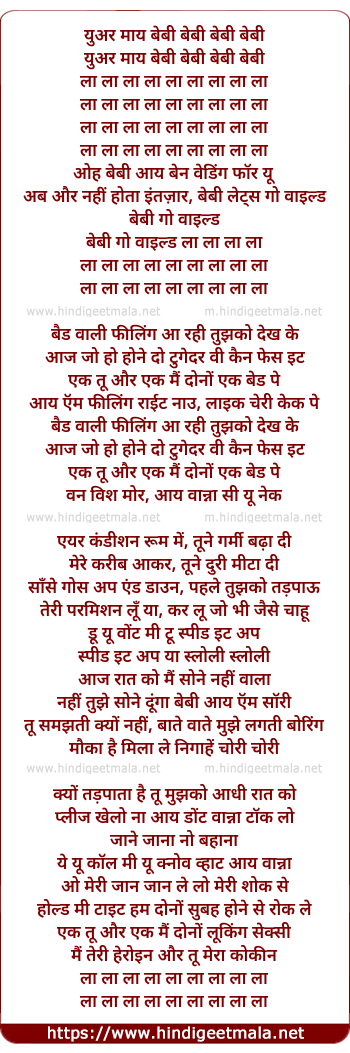 Lyrics of Bad Wali Feeling - युअर माय बेबी बेबी बेबी बेबी