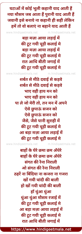 Lyrics of Bada Maza Aaya Ladai Me - बड़ा मज़ा आया लड़ाई में
