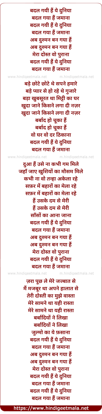 Lyrics of Badal Gayi Hai Ye Duniya - बदल गयी हैं ये दुनिया