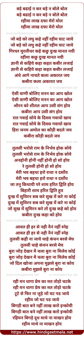 Bade Badayi Naa Kar Bade Naa Bole Bol - बड़े बढाई ना कर बड़े ना बोले बोल