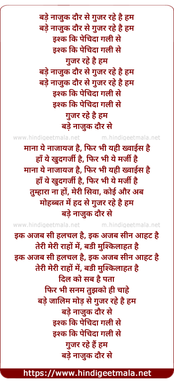 Lyrics of Bade Nazuk Daur Se - बड़े नाजुक दौर से