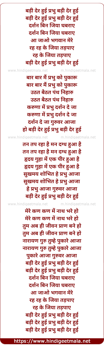 Lyrics of Badi Der Huyi Prabhu - बड़ी देर हुई प्रभु