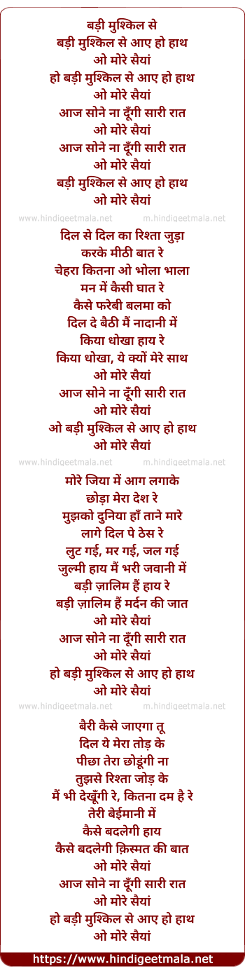 Lyrics of Badi Mushkil Se Aaye Ho Hath - बड़ी मुश्किल से आए हो हाथ