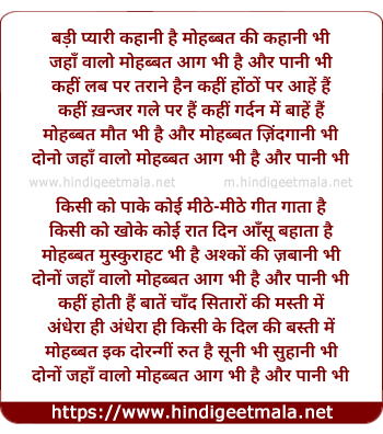 Lyrics of Badi Pyari Kahani Hai Mohabbat Ki Kahani Bhi - बड़ी प्यारी कहानी है मोहब्बत की कहानी भी