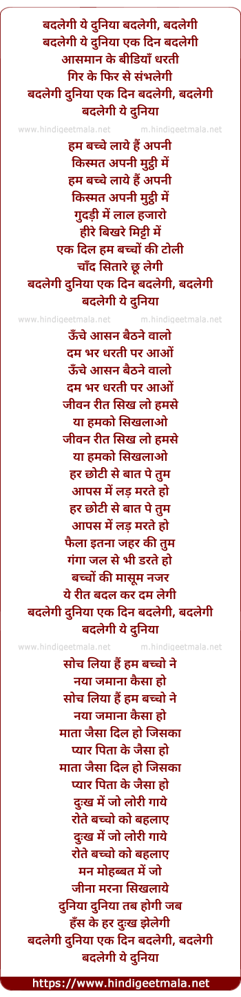 Lyrics of Badlegi Ye Duniya Ek Din Badlegi - बदलेगी ये दुनिया एक दिन बदलेगी