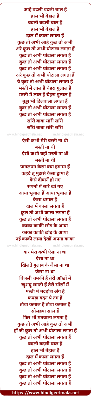 Lyrics of Badli Badli Chal Hai - बदली बदली चाल हैं