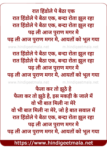 raat hindole pe baitha ek