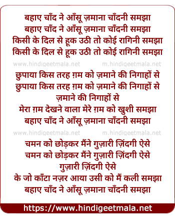 Lyrics of Bahaye Chand Ne Aansu, Zamana Chandani Samajha - बहाये चाँद ने आँसू, ज़माना चाँदनी समझा