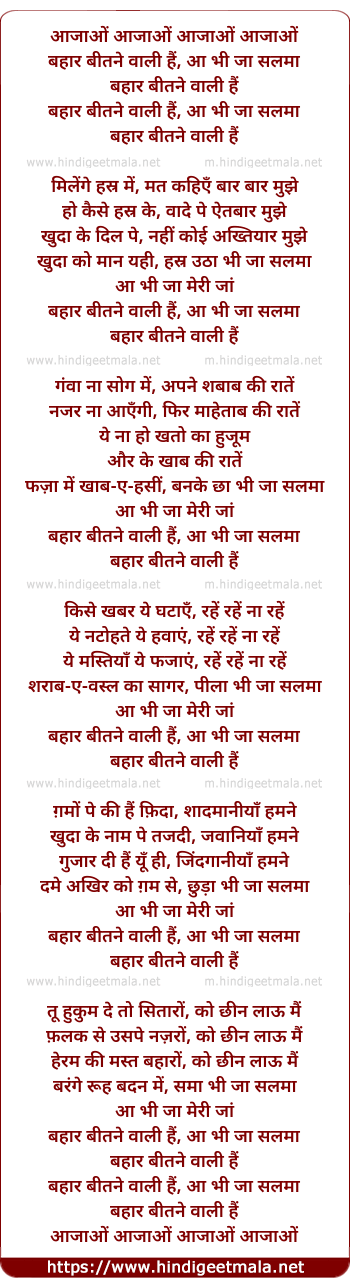 Lyrics of Bahar Bitne Wali Hai - बहार बीतने वाली हैं