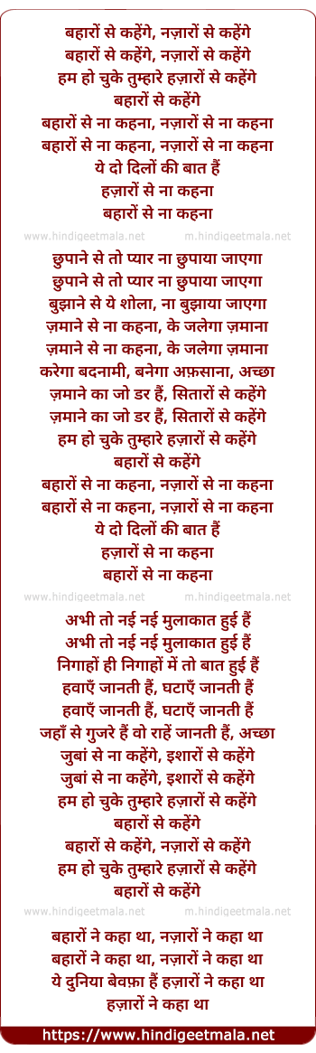 Lyrics of Baharo Se Kahenge - बहारों से कहेंगे