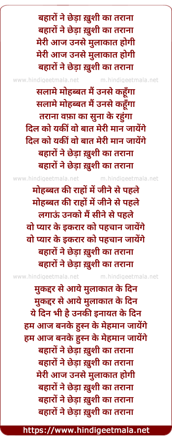 Lyrics of Baharon Ne Chheda - बहारों ने छेड़ा