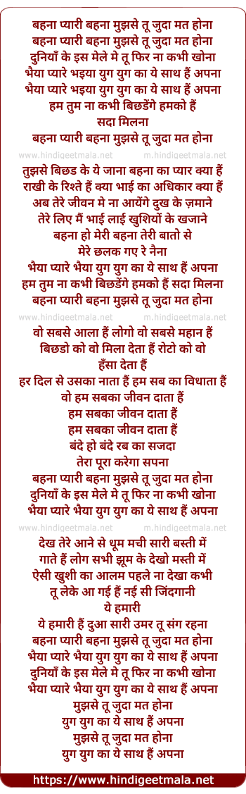 Lyrics of Bahna Pyaari Bahna - बहना प्यारी बहना