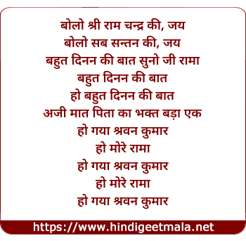 Lyrics of Bahut Dinann Ki Baat Suno Ji Raama - बहुत दिनन की बात सुनो जी रामा
