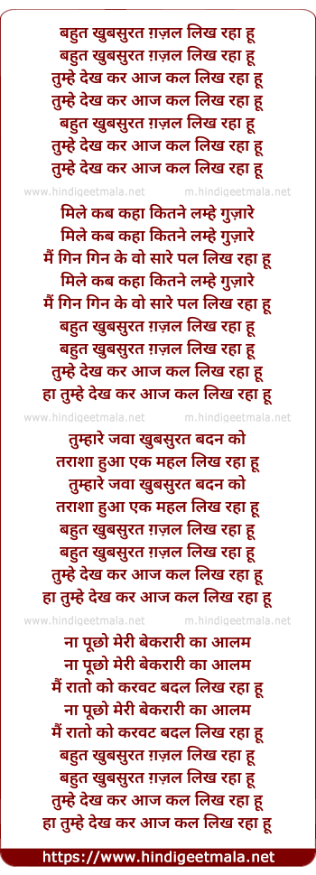 Lyrics of Bahut Khubsurat Gazal Likh Raha Hu - बहुत खुबसुरत ग़ज़ल लिख रहा हूँ