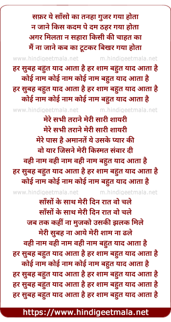 Lyrics of Bahut Yaad Aata Hai - बहुत याद आता है