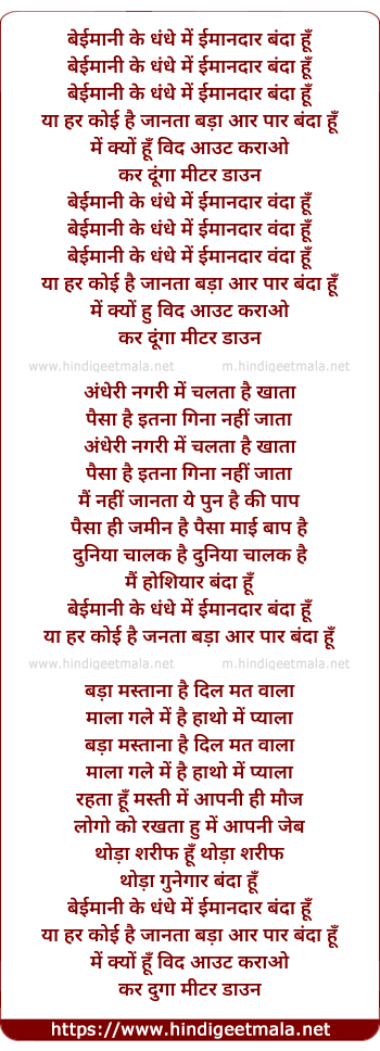 Lyrics of Baimani Ke Dhande Me - बेईमानी के धंधे में